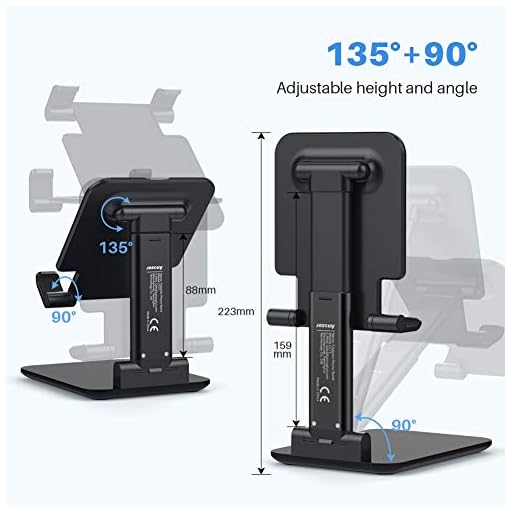💻[STABLE SOLID STAND & ANTI-SLIP DESIGN]: The desktop adjustable dock is composed with super sturdy metal-weighted base, and premium aluminum rod, which is strong enough to accommodate your phone and tablets. The silicone covered pad and the rubber hook assure you phone or tablet stay firmly in place and protect them from sliding and scratching. The rubber feet under the base makes it more stable when you tap the devices.