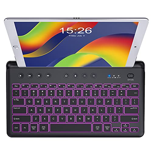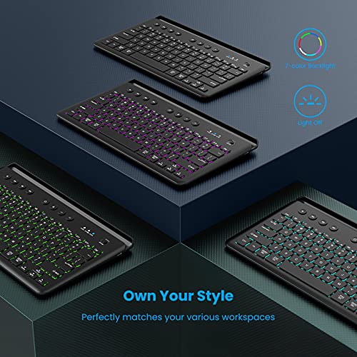 7-Color Adjustable Backlight. Illuminated keycaps are clear to recognize and ensures effortless typing at night. You can switch among 7 colors and adjust brightness with your preference. Moreover, you can turn off the light of Bluetooth keyboard as you want