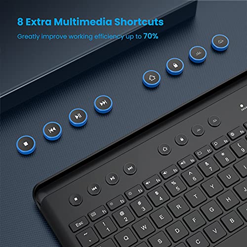 Improve 70% Work Efficiency. The upper row of 8 extra multimedia shortcut keys greatly improves your productivity when you handle multitask. Turn on player and play with ease without interrupting your workflow