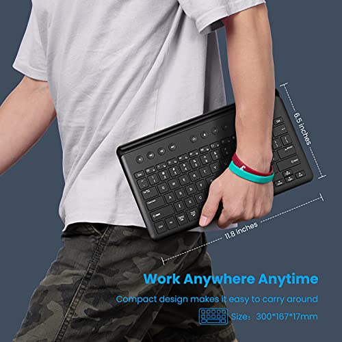 Slim and Portable Design. The compact design helps save your workspace and reduce arm extension. At only 1.71cm thick, slim keyboard is easy to carry around. No matter you are at work, taking a business trip or at study, Fatelegend multi-device keyboard always accompanies you
