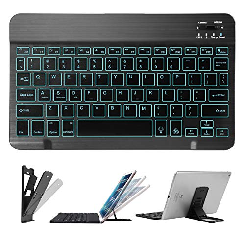 COMFORTABLE TYPING & VIEWING – Real “hard” laptop style keyboard with high end ABS material. Not cheap silicone keyboard as other cases in market. A spring mechanism underneath each key ensures a tactile response with every stroke, helping you to type faster and with less error than on a touch screen. Combo with the free stand holder can stand any tablets or phones at 6 different angles.