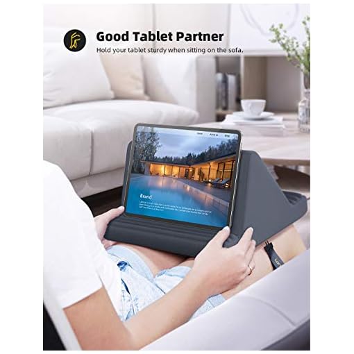 Tablet Pillow Stand, Pillow Soft Pad for Lap – Lamicall Tablet Holder Dock for Bed with 6 Viewing Angles, Compatible with iPad Pro 9.7, 10.5,12.9 Air Mini 4 3, Kindle, Galaxy Tab, E-Reader – Dark Gray
