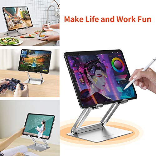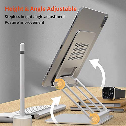[Adjustable height and angle & improved posture] Compared to a normal iPad stand, our tablet stunts are ergonomically designed so that you can freely adjust the angle and height of your choice from 5 cm to 23 cm. You can work comfortably at a comfortable angle, freed from the inconvenient height of desks and chairs in your office or home. Supports both vertical and horizontal display. Please note: It is stable and requires some force to adjust.